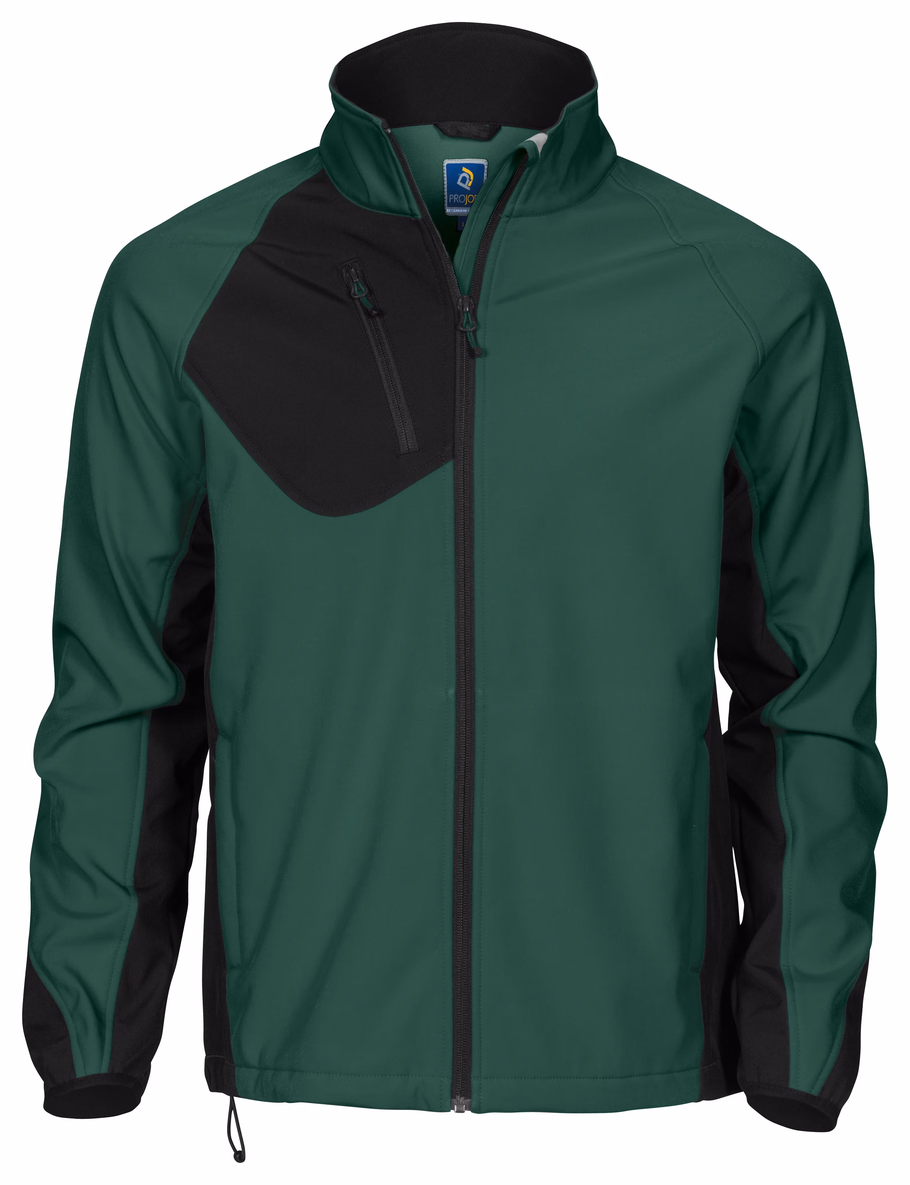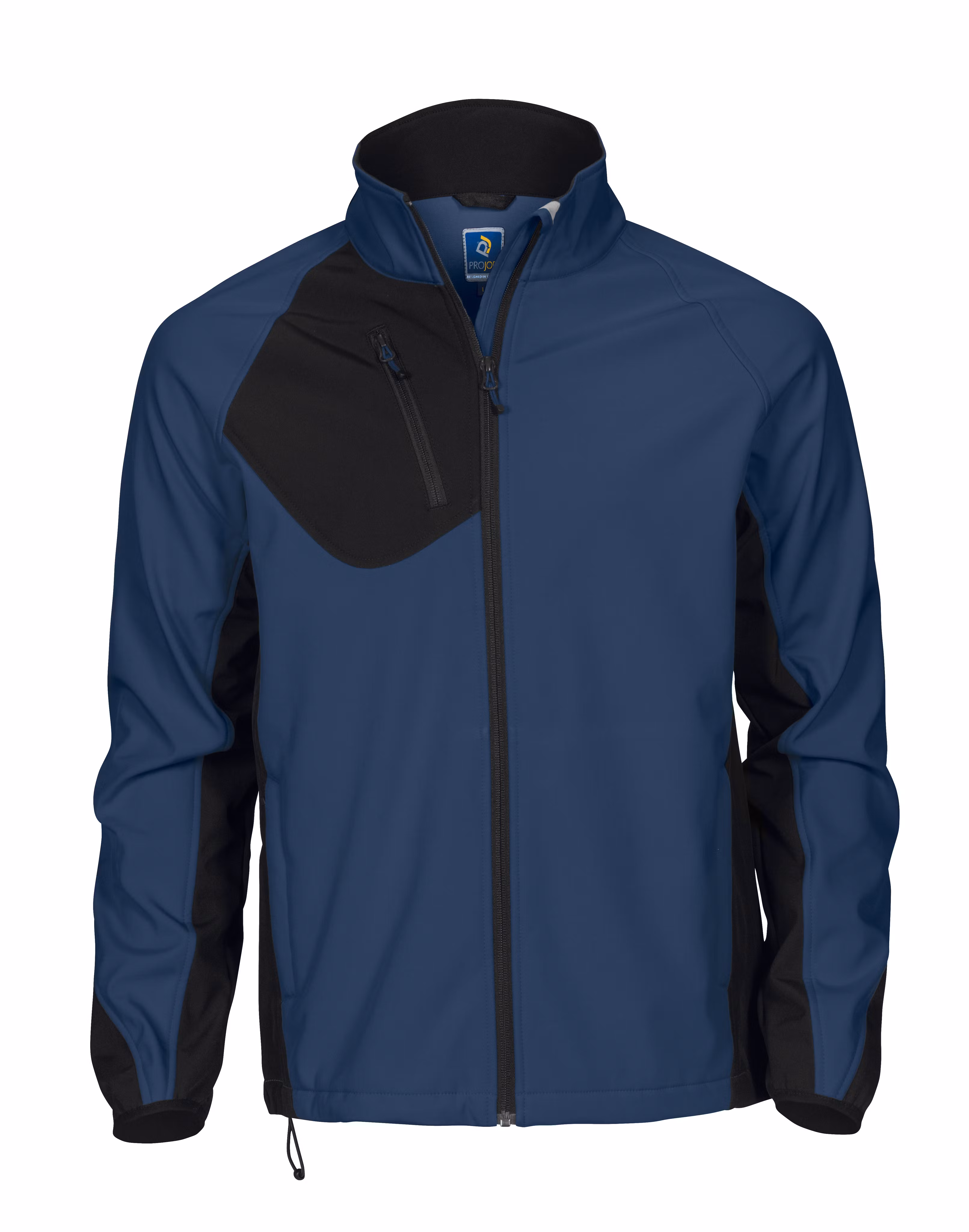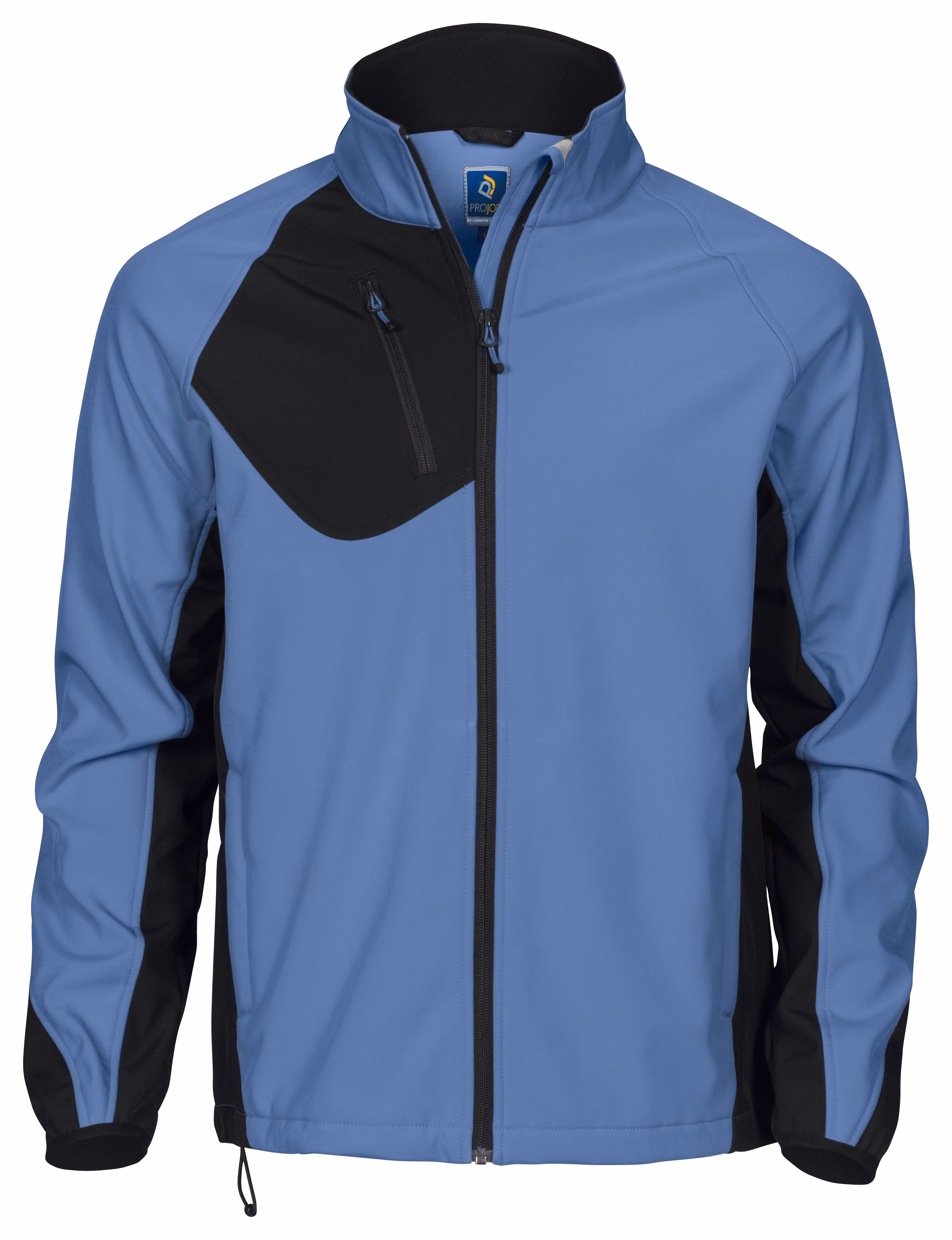 Softshelljacka med bra andningsförmåga. Två sidfickor med dragkedja. Bröstficka med dragkedja och invändigt fäste för ID-kortshållare. Två innerfickor. Hel dragkedja framtill med invändig vindslå för att förhindra vinddrag, samt hakskydd för att förhindra skav mot hakan. Reglerbar med snodd i nederkant.
